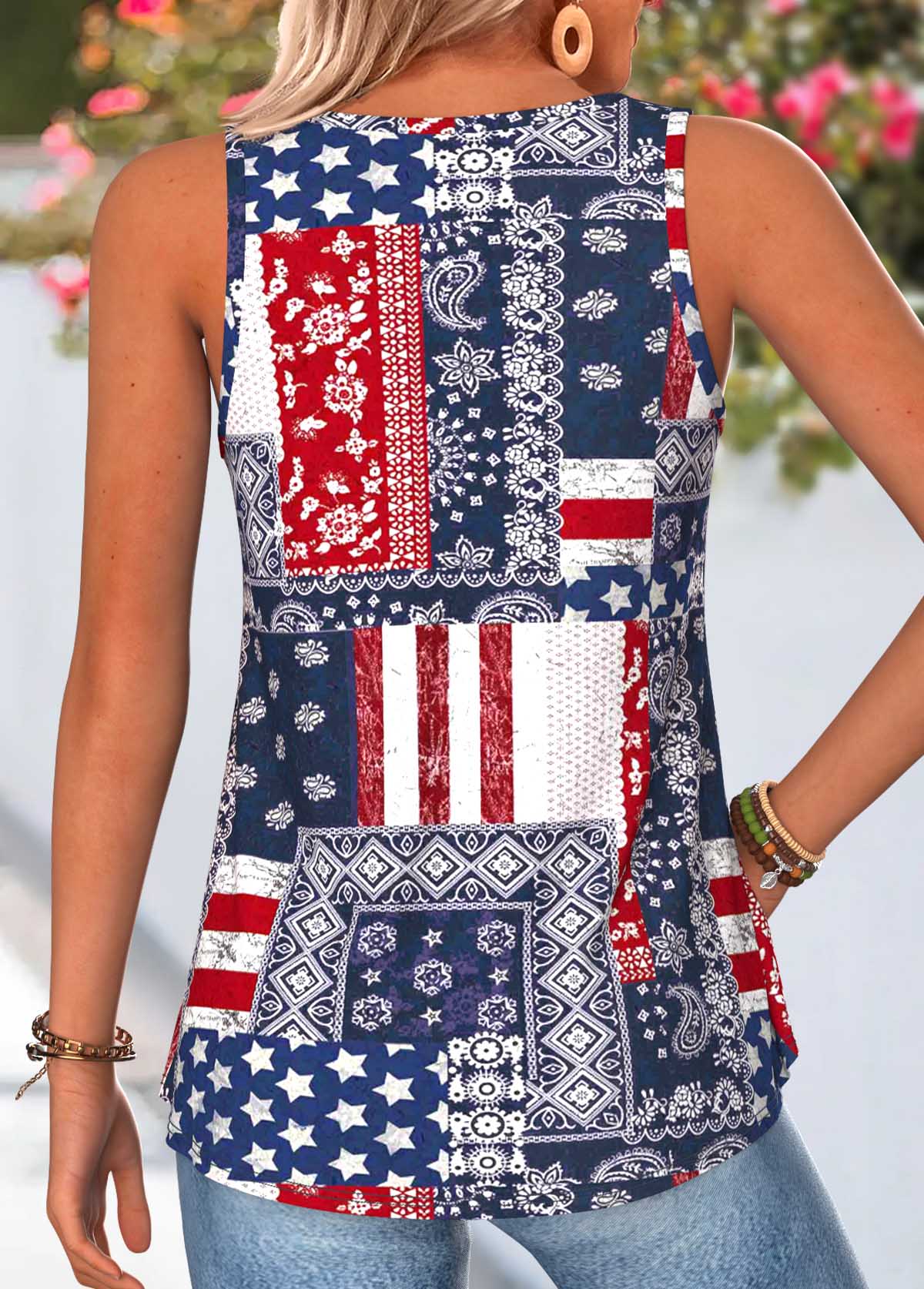 NEW IN American Flag Tribal Print Curved Hem Navy Tank Top