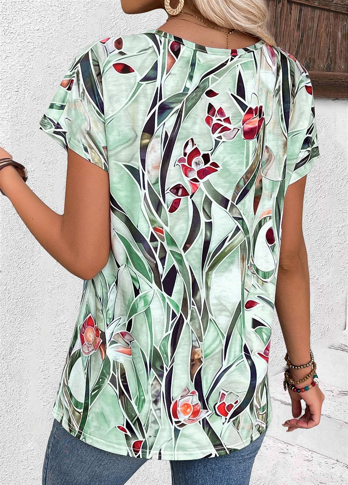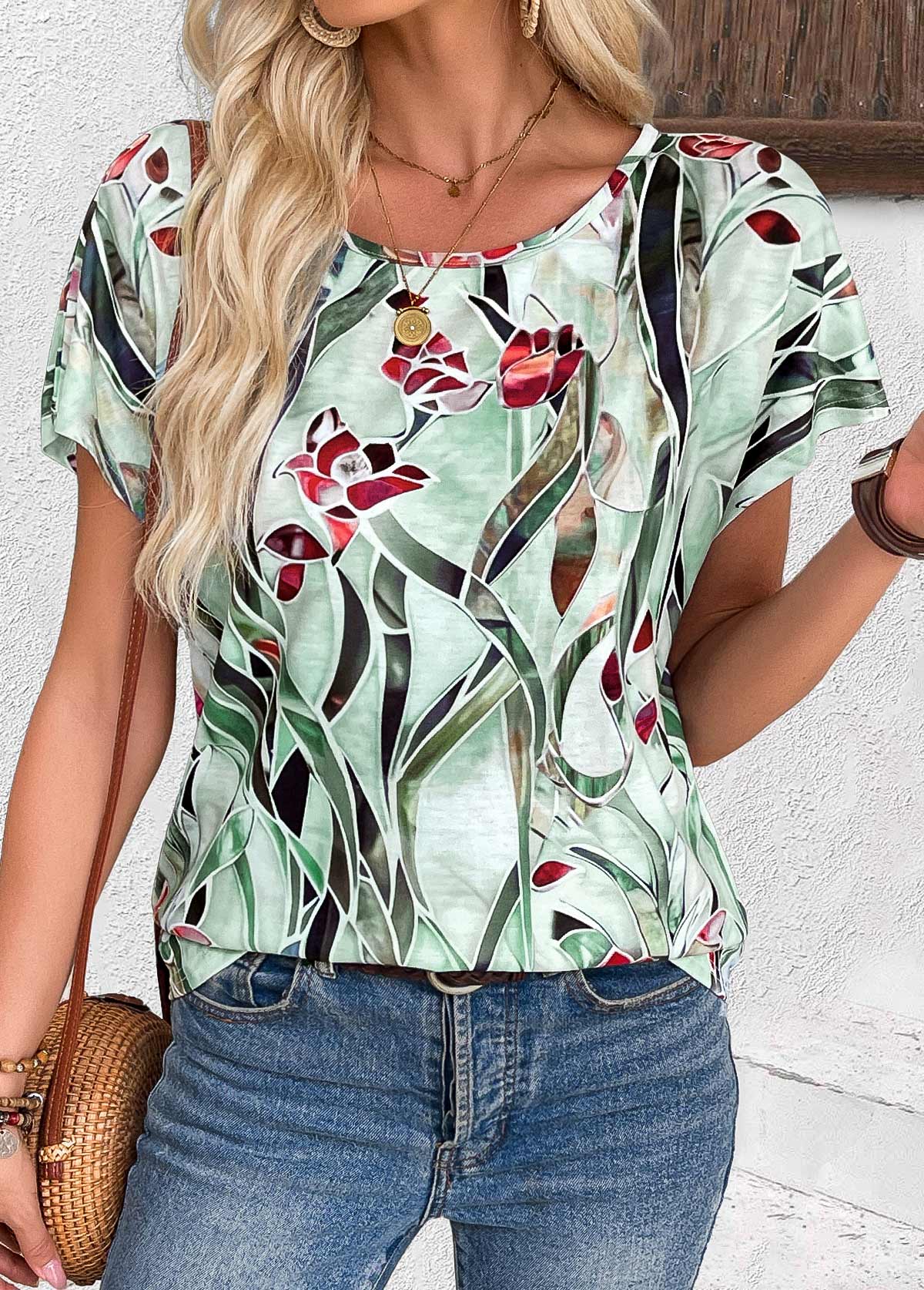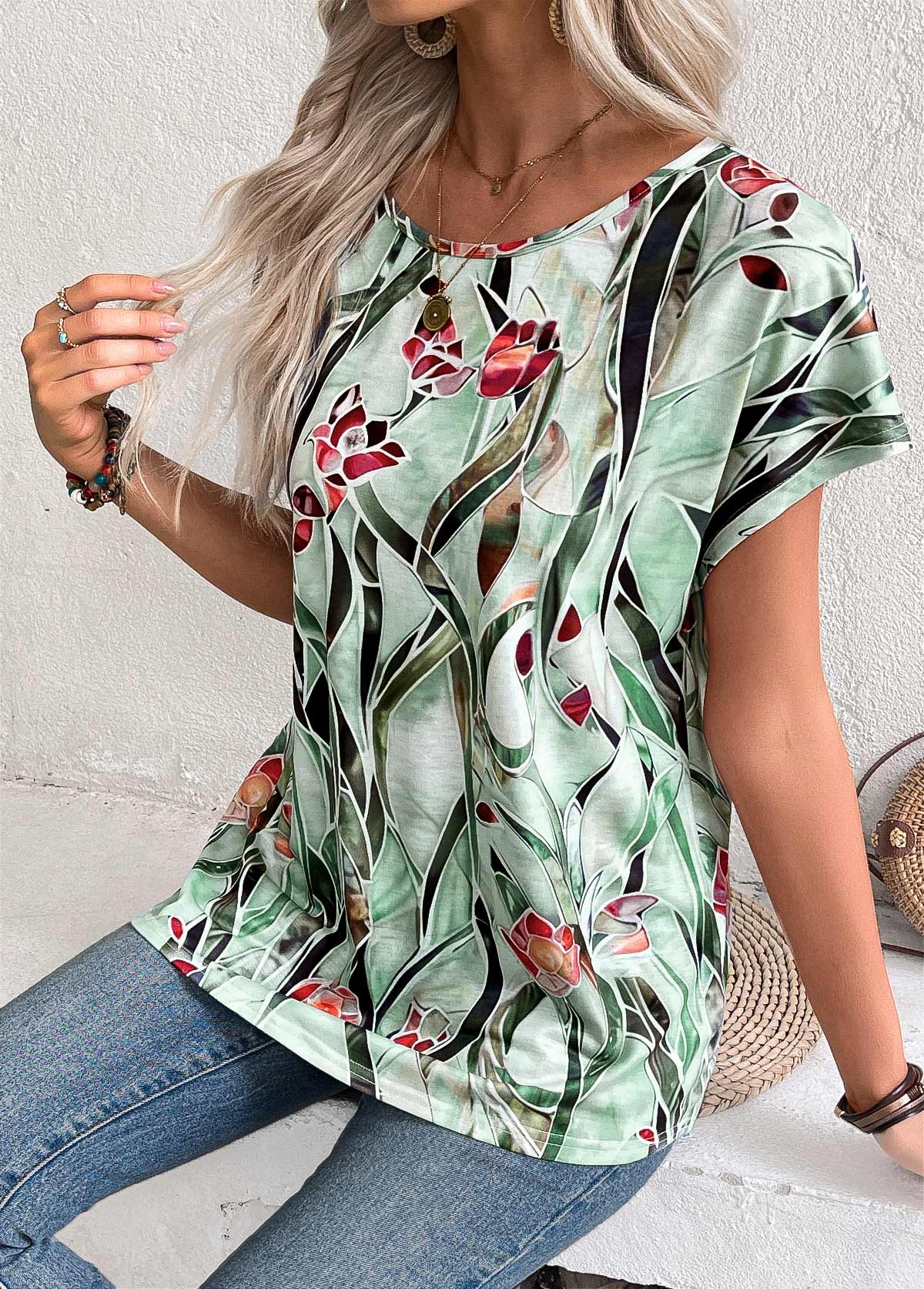 SALE Floral Print Multi Color Short Sleeve T Shirt  Rosewe®