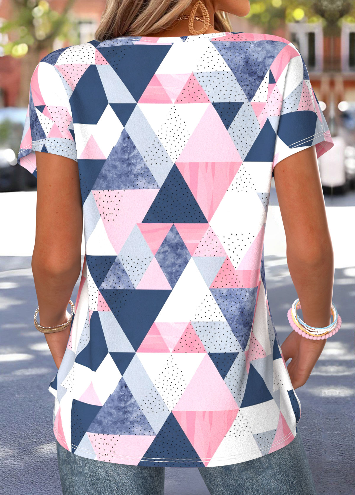 NEW IN Geometric Print Tummy Coverage Multi Color T Shirt