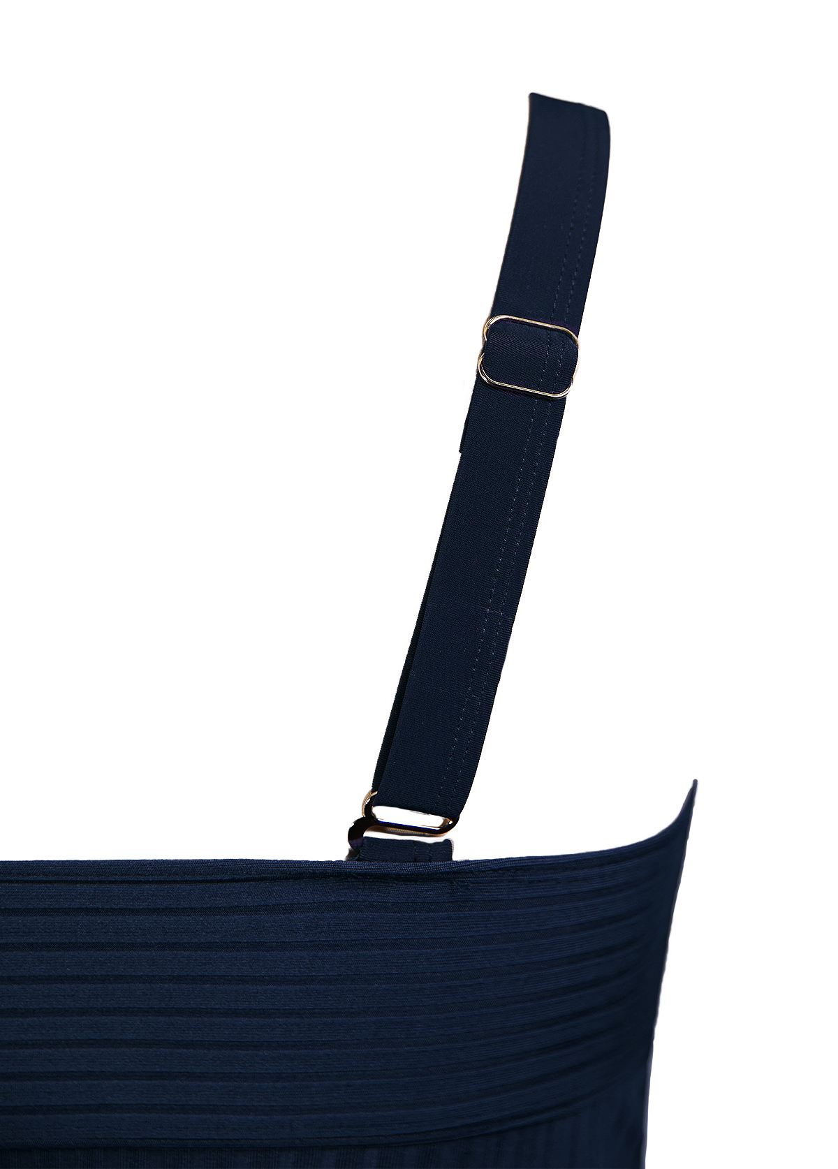 Mid Waisted Paisley Print Contrast Binding Navy Tankini Set