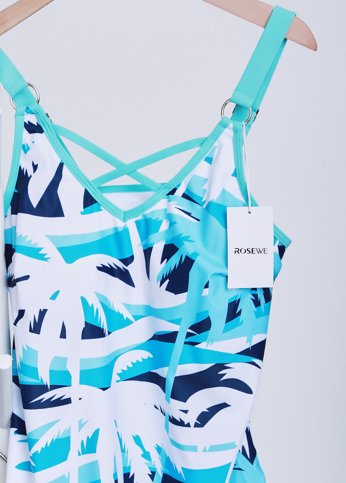 SALE Mid Waisted Tropical Plants Print Criss Cross Tankini Set