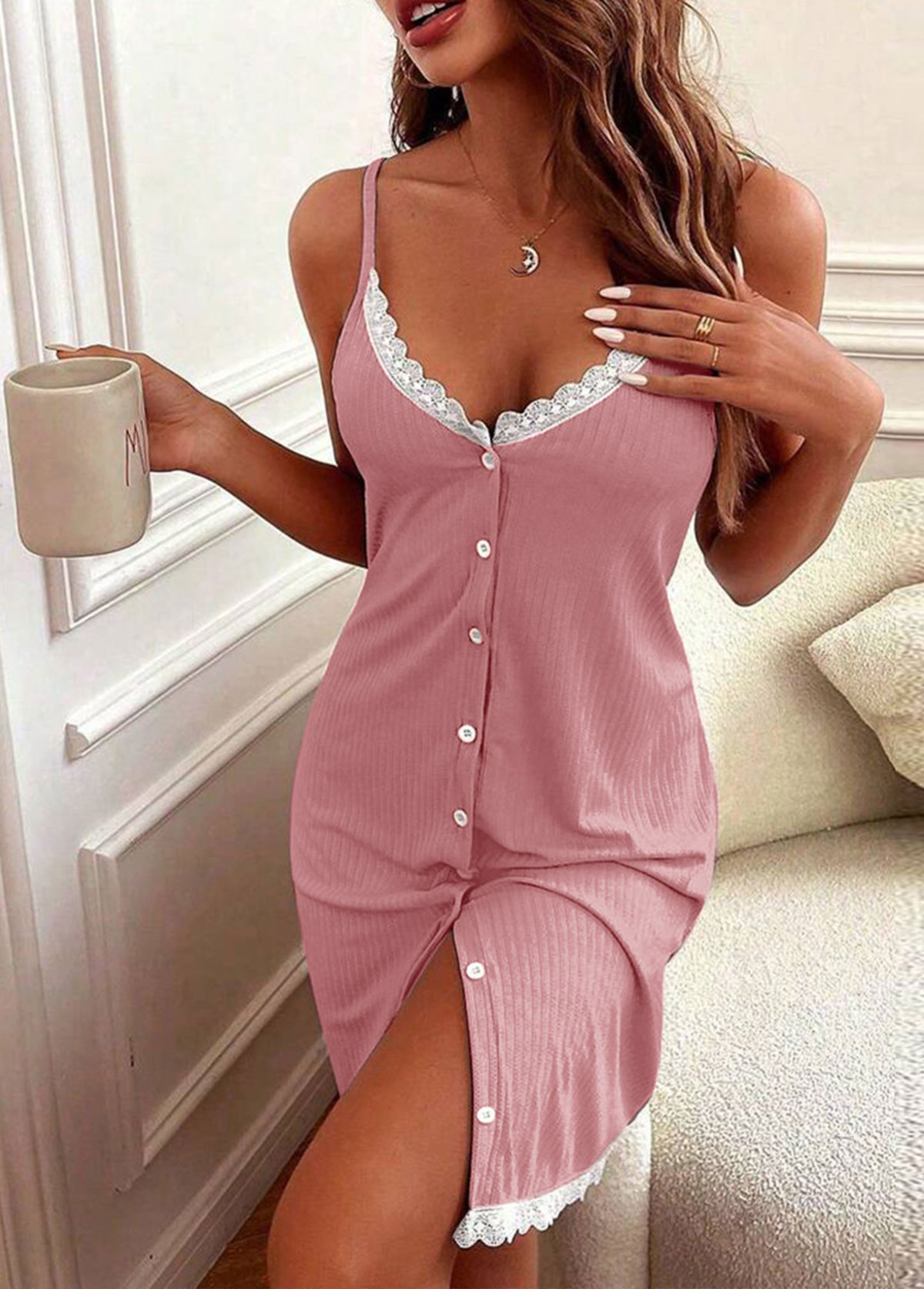 Pink Strappy V Neck Strappy Nightdress  Rosewe®