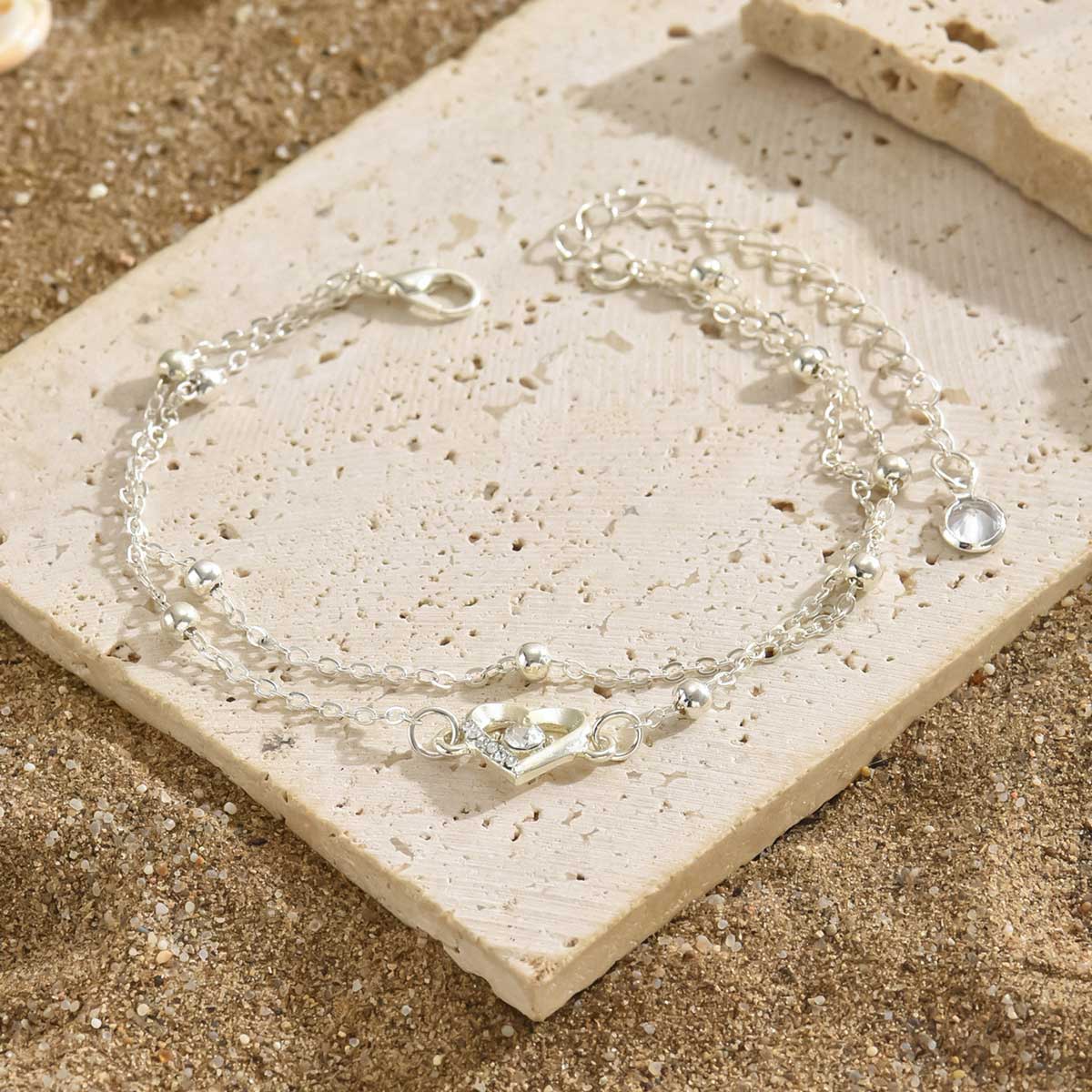 SALE Silver Layered Heart Design Alloy Anklet  Rosewe®
