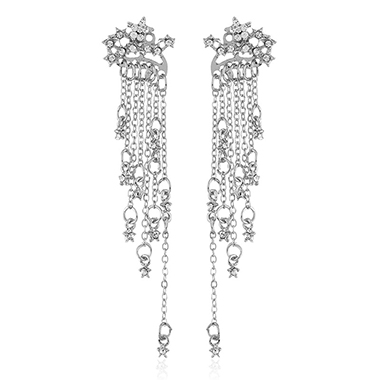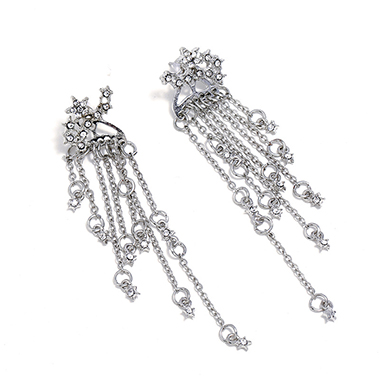 • Rhinestone Arrow Detail Silver Heart Earrings