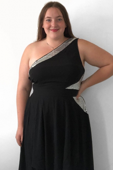 Home/Share/High Waist One Shoulder Asymmetric Hem Dress