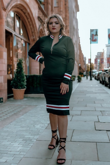Home/Share/Long Sleeve Contrast Striped Quarter Zip Dress