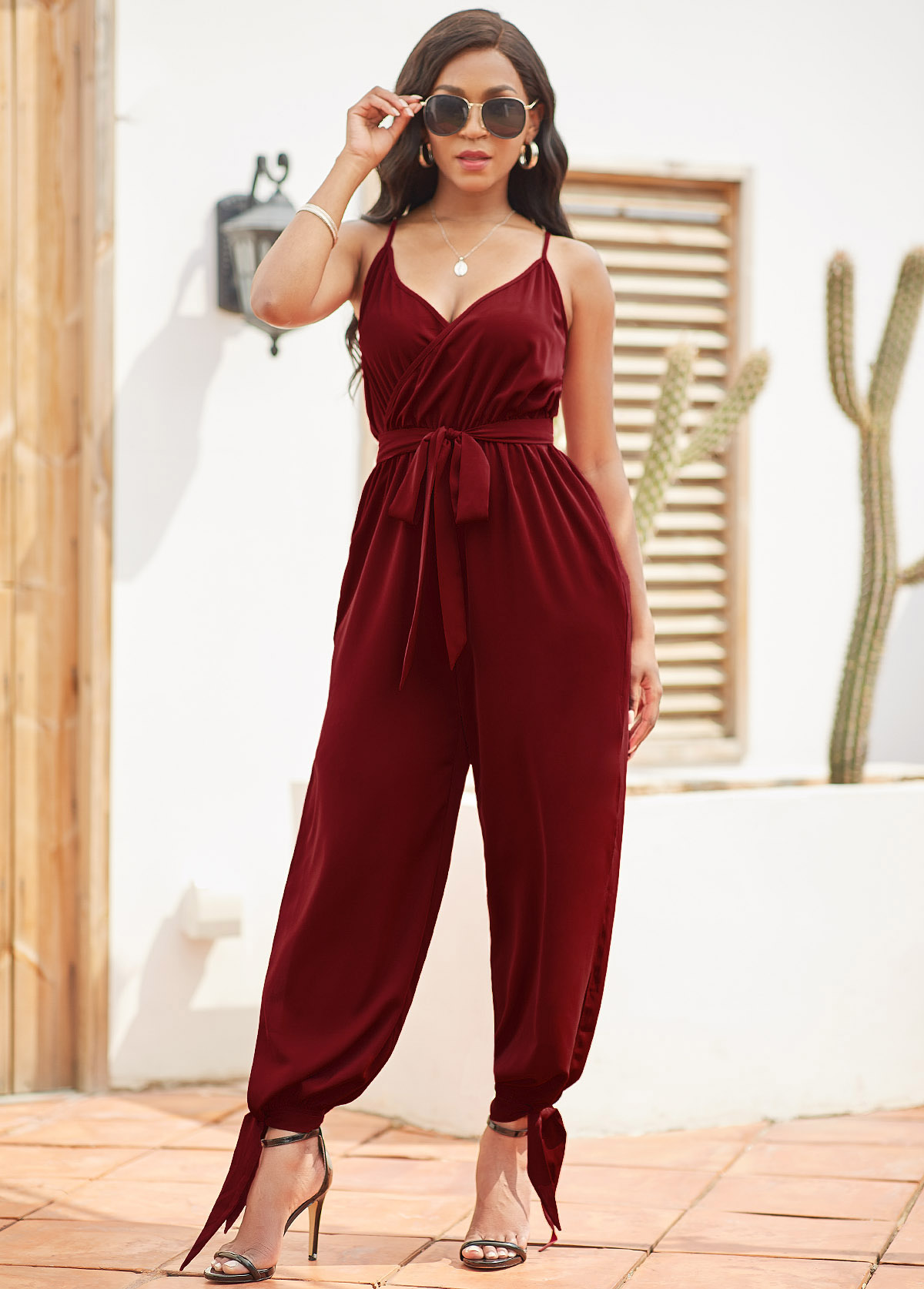 Home/Share/Slit Leg Belted Spaghetti Strap Jumpsuit