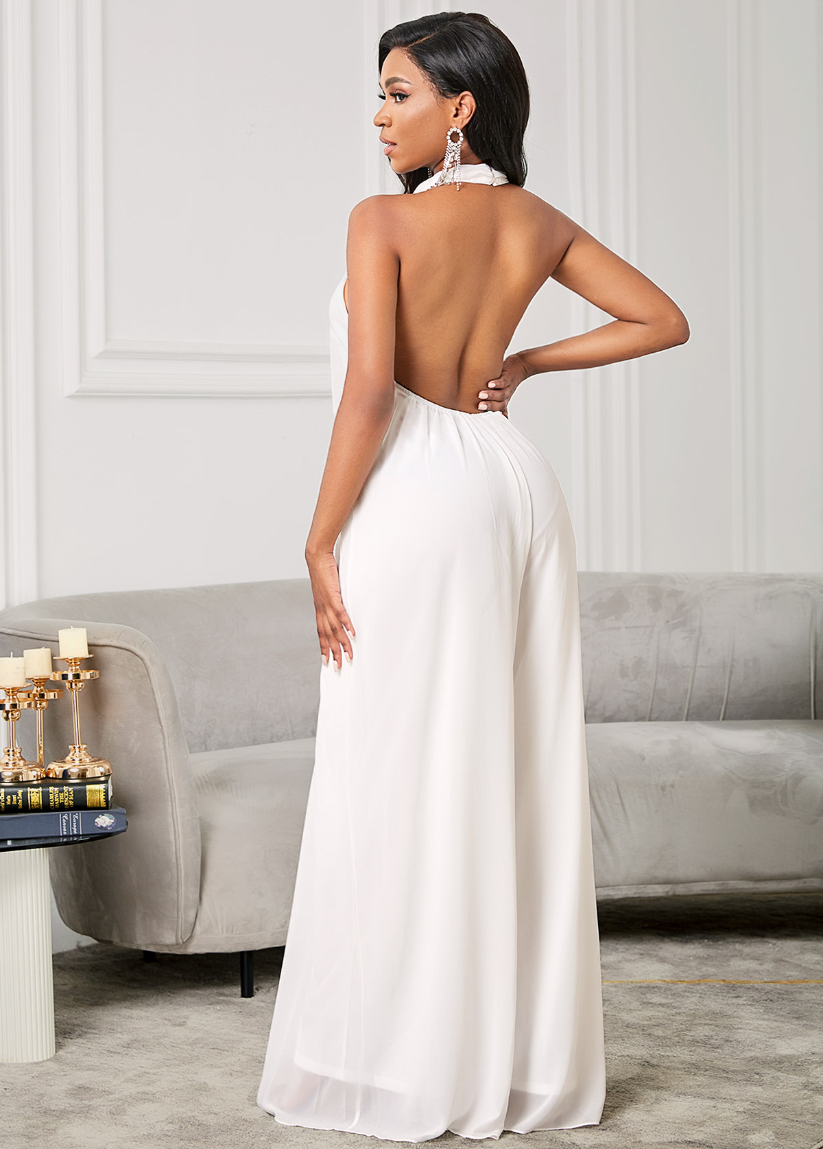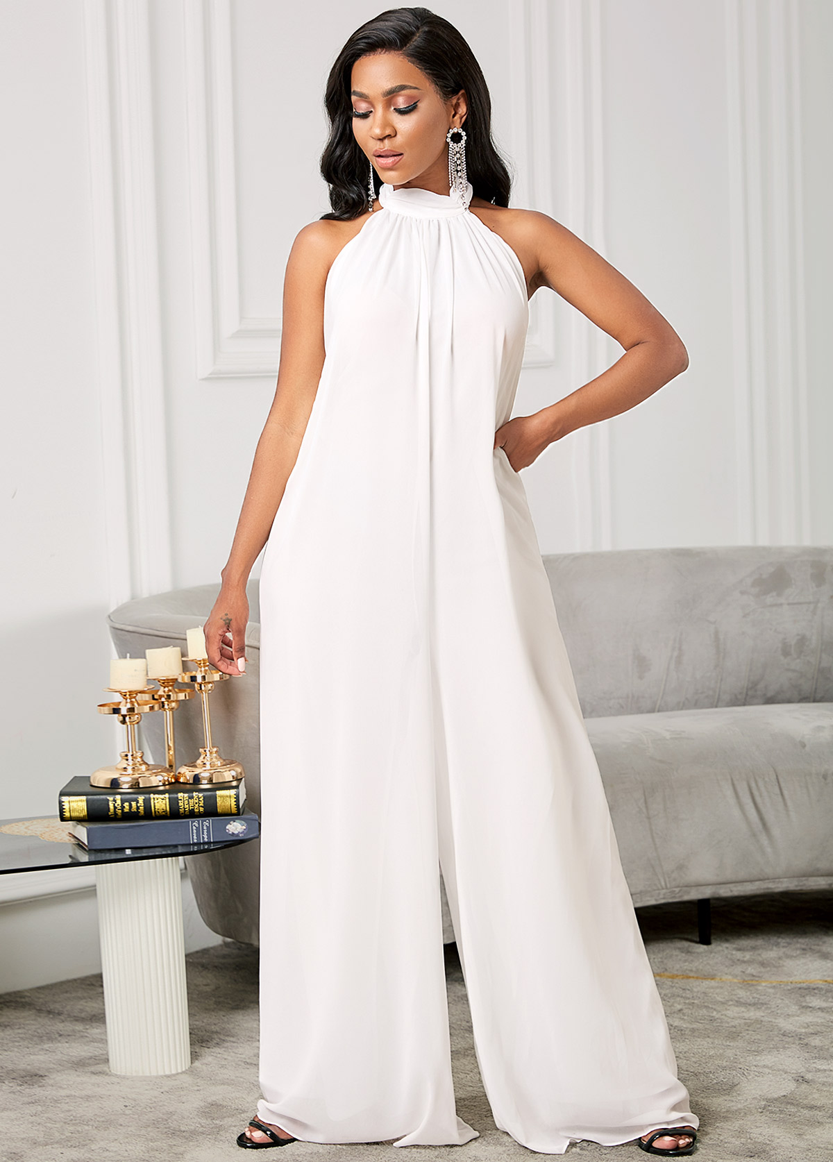 Home/Share/Loose Open Back Chiffon Solid Jumpsuit