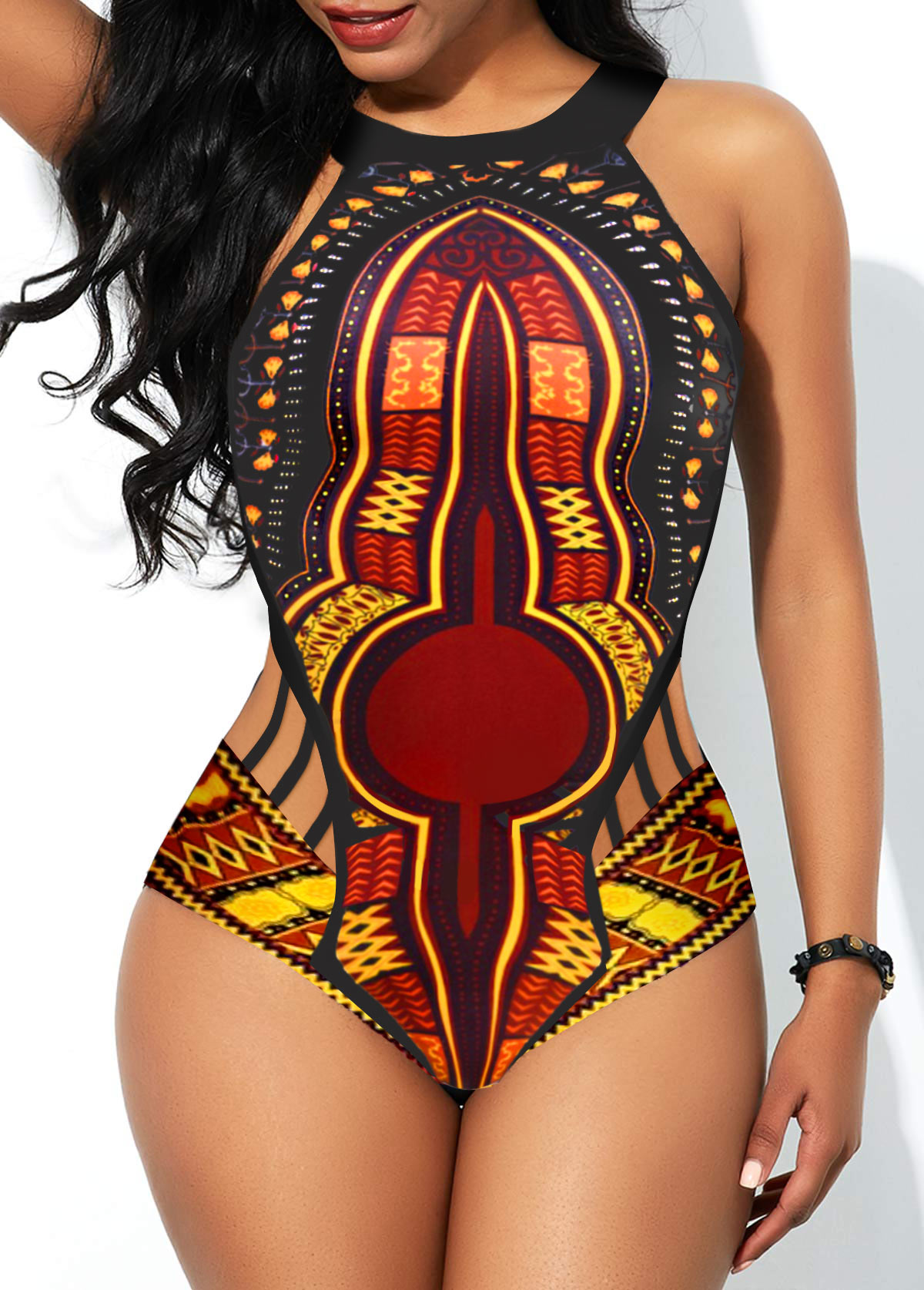 Home/Share/Tribal Print Cut Out Black One Piece Swimwear