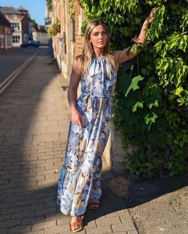 Home/Share/Floral Print Bowknot Belted Light Blue Dress