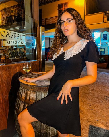 Home/Share/Lace Patchwork Black Short V Neck Dress