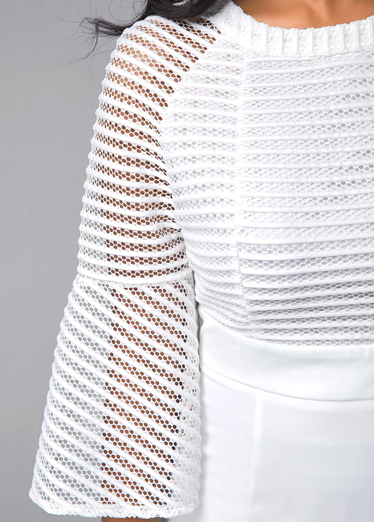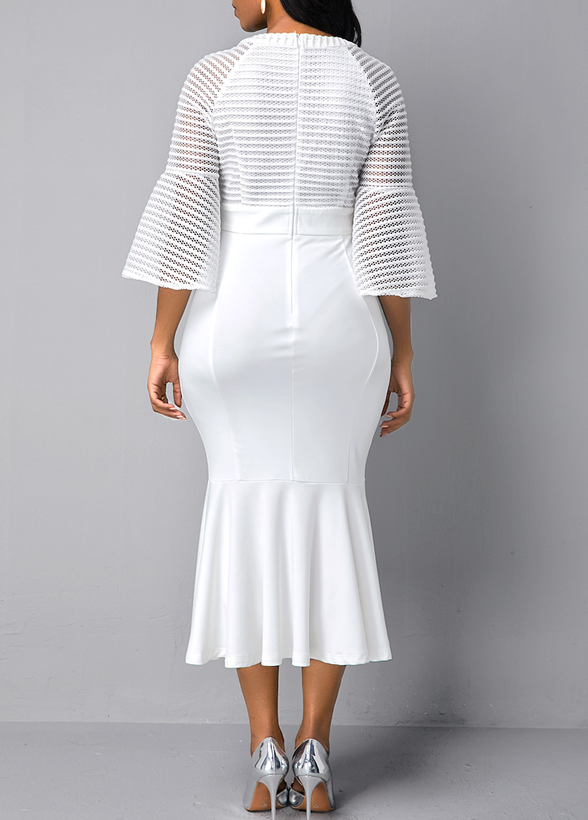 Home/Share/Round Neck Mesh Panel Flare Sleeve Mermaid Dress