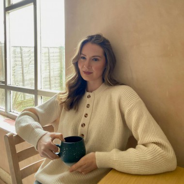 Home/Share/Light Camel Split Neck Long Sleeve Button Sweater