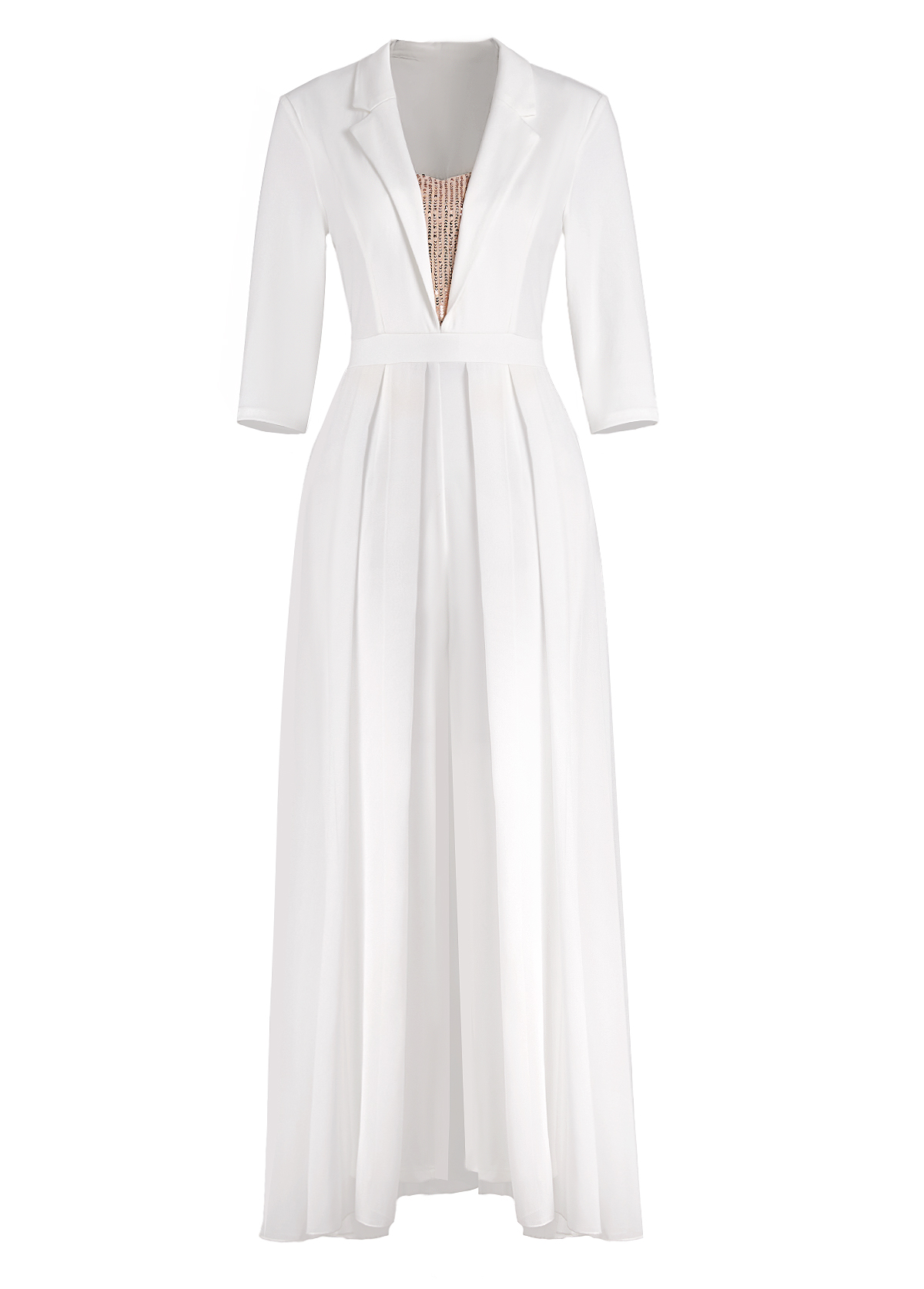 Home/Share/Sequin Ankle Length Lapel Regular White Jumpsuit